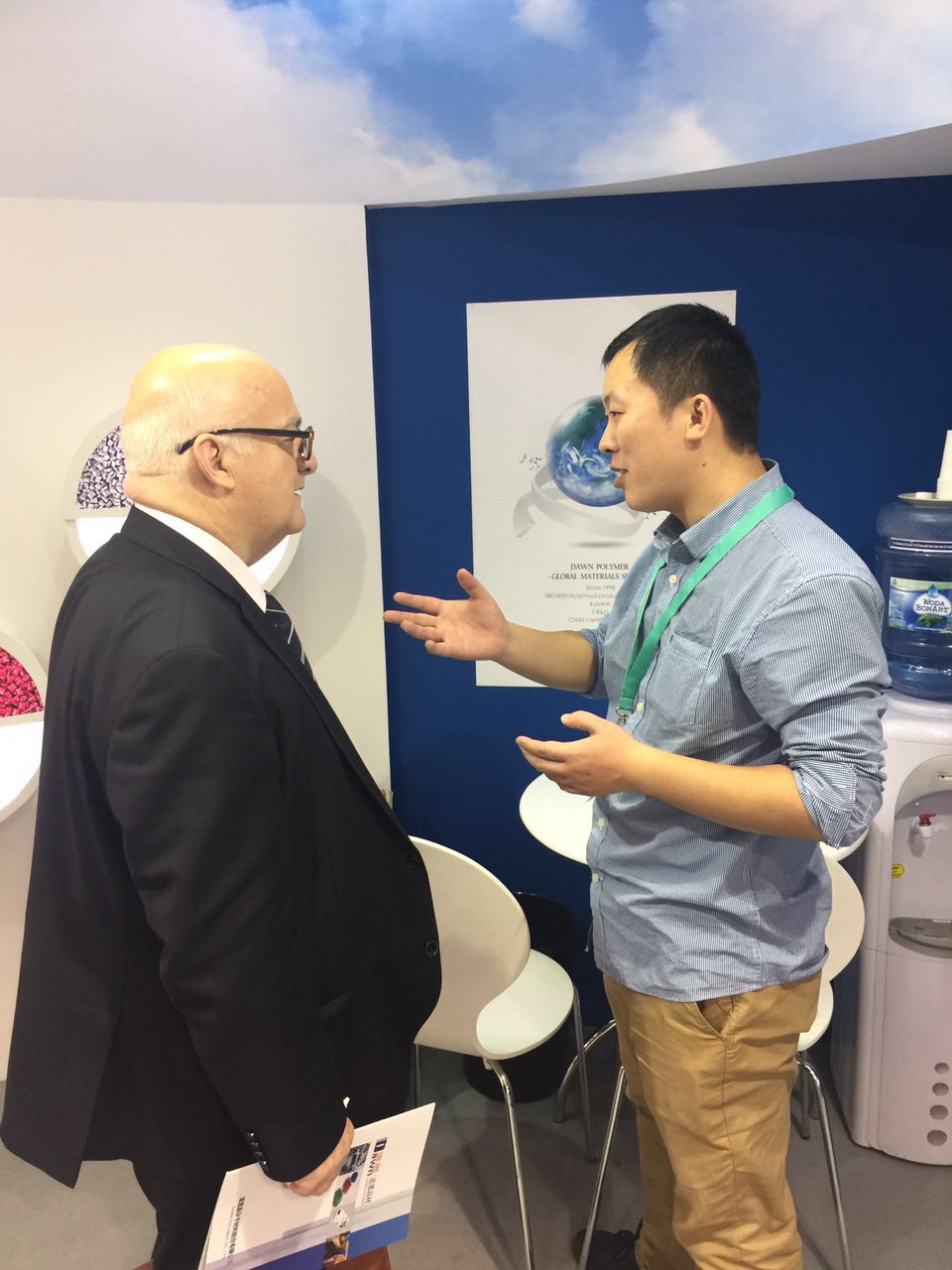 展會上,道恩高材公司展示的主要產品有TPV系列,新產品為一體化發泡TPV,很多國際客戶對道恩高科技含量的產品表示震驚和欽佩,并得到各主流汽車廠家的認可。此外,TPE醫用材料、工程塑料的長玻纖增強PP和無味熔噴料也是展示的亮點。美國庫博公司全球采購總經理表達了與道恩合作的愿望,德國百年企業舍弗勒集團旗下LUK公司前來咨詢一體化發泡TPV情況。據統計,參展期間共接待客戶116個,有效傳播了道恩的國際化品牌形象。