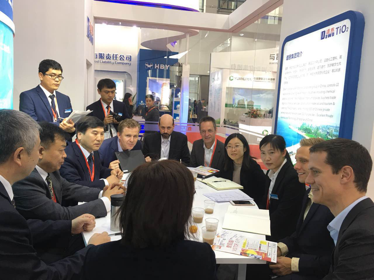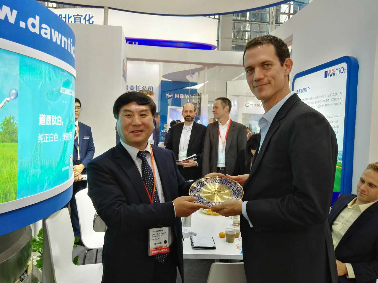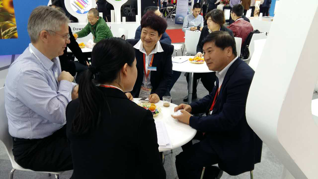 作為世界第三大油墨生產商,盛威科油墨有限公司全球采購總監NevenBarctel慕名訪問道恩展臺,于曉寧總裁與客人進行友好交流。雙方就建立長期戰略合作伙伴關系達成共識,共同研發油墨專用鈦白粉,成為盛威科全球統一牌號。道恩集團常務副總裁索延輝用流利的日語和日本立邦洽談2017年合作事宜,經過技術交流,最終確定明年第一季度訂單。