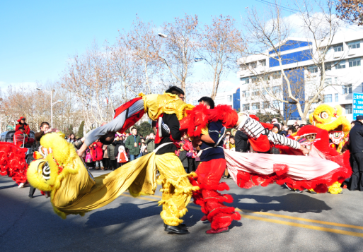 道恩秧歌隊以強大的陣容表演了大秧歌、舞獅子等市民喜聞樂見的節目。大秧歌以粗獷奔放、熱烈歡快、風趣幽默的表演風格,一路洋溢著新年的喜慶景象;舞獅子表演精彩絕倫,為新春增添了濃郁的歡樂氣氛,不僅表達了道恩人對廣大市民、社會各界的新春祝福,也充分展現出了道恩人意氣風發、拼搏向上的風采。
