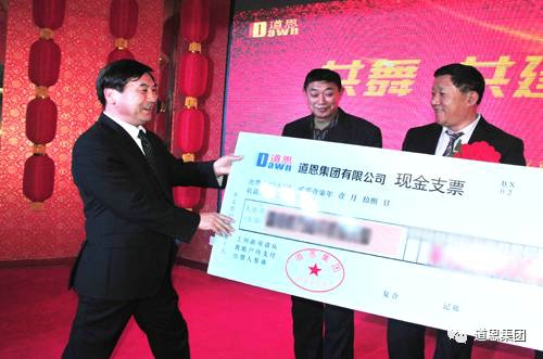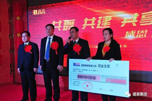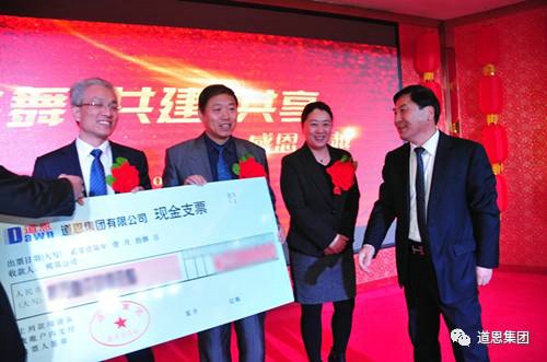 宴會在開場舞《大地飛歌》中拉開帷幕。晚宴上,大家共同觀看了“共舞·共建·共享——感恩、超越”超值分享短片,通過視頻領略9個超值分享獲獎單位的風采。獲獎單位和職能部門分別上臺亮相,以高昂的士氣展示感恩文化,詮釋超值分享激勵機制帶來的喜人變化,彰顯道恩人嶄新的精神風貌。集團公司領導為獲獎單位和職能部門頒發獎金,并合影留念。