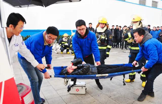 此次演練由龍口經濟開發區管委統一部署,道恩集團聯合龍口市消防大隊電廠路消防中隊、龍礦醫院急救中心共同開展。來自開發區管委、龍港集團、龍礦集團、華電龍口、海洋石油船舶中心等單位領導和企業代表60余人前來觀摩。