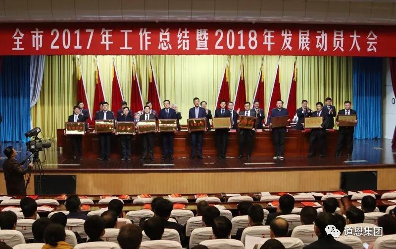 2月27日上午,在煙臺市委、市政府召開的全市2017年工作總結大會上,道恩集團有限公司被授予“經濟發展功勛企業”稱號。此前的2月23日上午,在龍口市委、市政府召開的2017年工作總結暨2018年發展動員大會上,道恩集團有限公司榮獲先進企業“稅收貢獻獎”、“項目投入貢獻獎”,山東道恩國際貿易有限公司榮獲“出口創匯先進企業”。這些榮譽的獲得,標志著道恩對經濟社會發展的貢獻度持續提升。
