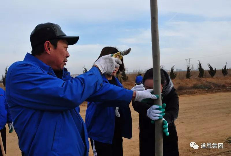 春寒料峭,絲毫沒有消退道恩人的植樹熱情。上午8點許,大家陸續奔赴植樹點。在植樹現場,廣大干部員工紛紛揮舞鐵鍬參與到植樹浪潮中。大家互相配合,分工合作,你測量我鏟土,你扶樹我填埋,無數只手同時托起了綠化的希望之光。副總裁王永放、宋慧東等領導現場傳授種植經驗,大大提高植樹效率,熱火朝天的干勁激動人心,將大家的勞動熱情推向高潮。在植樹隊伍中,還出現了學生的身影,這些“小道恩人”跟隨家長參加植樹勞動,增強綠化環保意識,過一個有意義的周末。短短兩個小時,荒蕪的黃土地便重現生機,滿載道恩人的勤勞與熱情,稚嫩的樹苗在此扎根成長。
