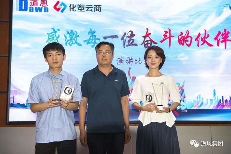 此次比賽特邀集團公司領導及營銷中心、化塑云商領導擔任評委,從演講內容、語言表達、姿態神情、儀表形象等方面進行現場打分,充分保證了比賽結果的公平、公正、公開。17名選手表現優異,經過激烈角逐,綜合管理部孫董明榮獲一等獎,此外還評出了二等獎2名,三等獎3名,主要評委上臺為獲獎者頒獎并合影留念。