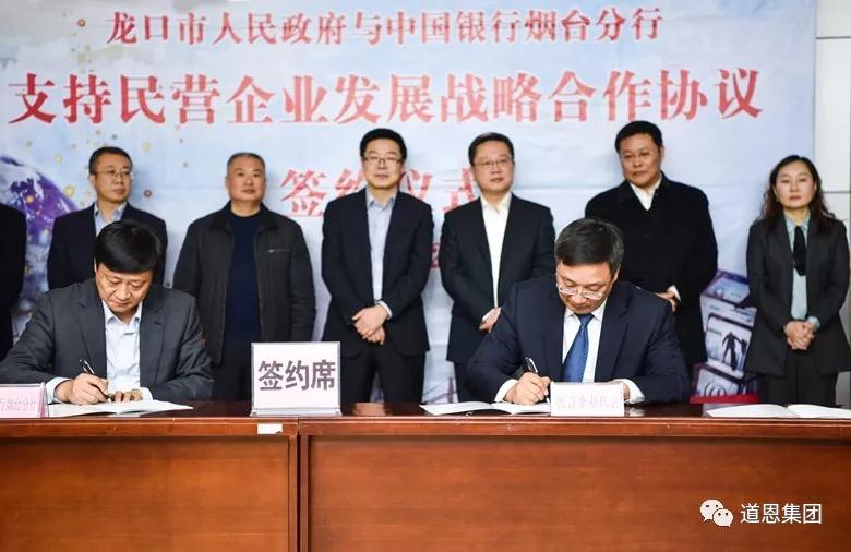 12月25日,龍口市人民政府與中國銀行股份有限公司煙臺分行舉行支持民營企業發展戰略合作協議簽約儀式,龍口市市長呂波、中國銀行山東省分行副行長景在倫出席活動,中國銀行、人民銀行、銀監局及有關部門相關領導50余人參加活動。會上,道恩集團副總裁宋慧東作為全市唯一的民營企業代表進行發言,并代表道恩簽約。