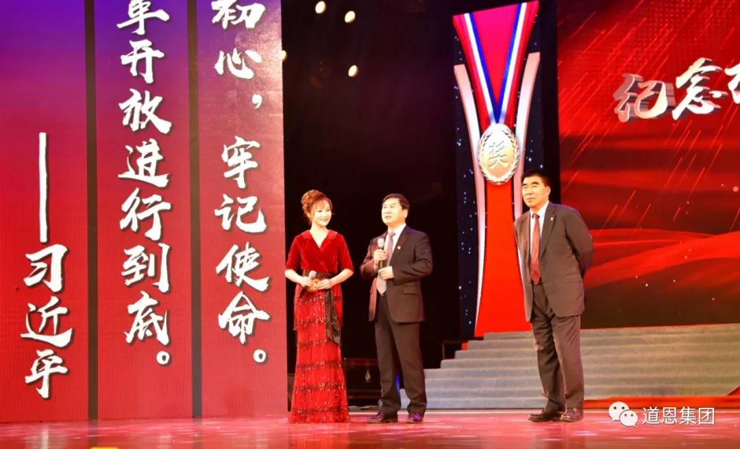 1月28日下午,龍口市舉辦紀念改革開放四十年感動龍口暨第七屆四德工程建設頒獎典禮,對改革開放40年感動龍口和龍口市第七屆道德模范個人及群體進行隆重表彰。龍口市全體市級領導出席典禮;道恩集團董事長于曉寧當選“龍口市最美改革人物”,受邀出席活動并發表感言。