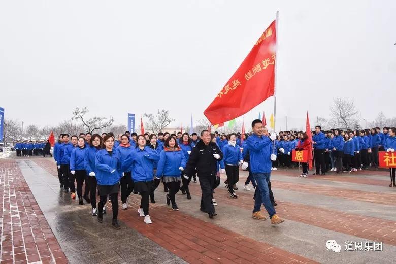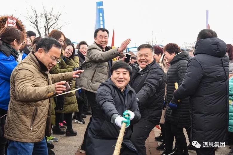 2月19日,是傳統節日元宵佳節。一場春雪后的上午,道恩集團2019年元宵節趣味運動會在道恩文化廣場舉行,來自各部門、單位及新員工的8支代表隊參加活動,道恩集團董事長于曉寧、總裁索延輝及集團公司領導班子成員出席活動。