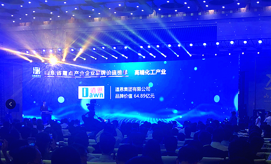 道恩集團是熱塑性彈性體、塑料原料、高分子新材料、特種橡膠、精密模具及鈦白粉等產品應用一站式整體解決方案的提供商。多年來,在依法治企、誠信經營、品牌建設等方面均發揮了良好的帶頭示范作用,多次入圍山東民營企業百強。此前,“道恩及圖”曾被認定為山東重點培育的國際自主品牌。2018年9月,道恩集團以品牌價值63.08億元入圍2018山東省企業品牌價值百強榜,位列第25名。近年來,道恩品牌價值在持續提升。