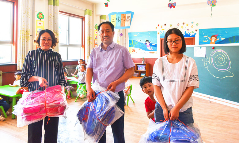 5月30日下午,道恩集團副總裁王可友將愛心書包送到了北皂前村幼兒園和小孫家幼兒園。孩子們收到特殊的節日禮物,十分開心,稚嫩的臉上洋溢著幸福的笑容。