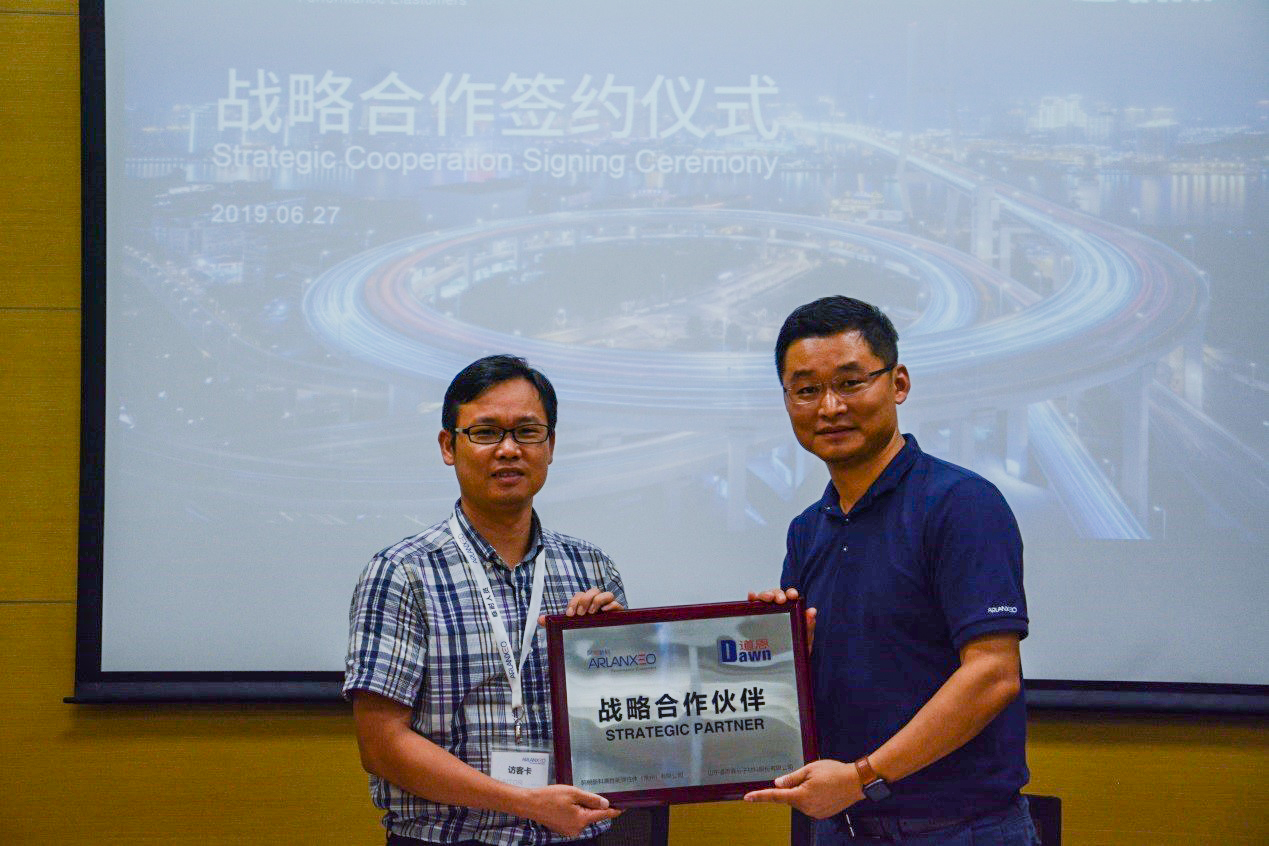 6月27日,山東道恩高分子材料股份有限公司(簡稱道恩股份)與阿朗新科高性能彈性體(常州)有限公司(簡稱阿朗新科)在阿朗新科EPDM常州工廠舉行戰略合作簽約儀式, 雙方在Keltan?EPDM的使用上建立戰略伙伴關系,并努力拓展其他領域的合作。道恩集團副總裁邱煥玲、道恩股份副總經理田洪池、阿朗新科大中華區銷售總監路伯揚、阿朗新科亞太區技術總監程寶家出席儀式。