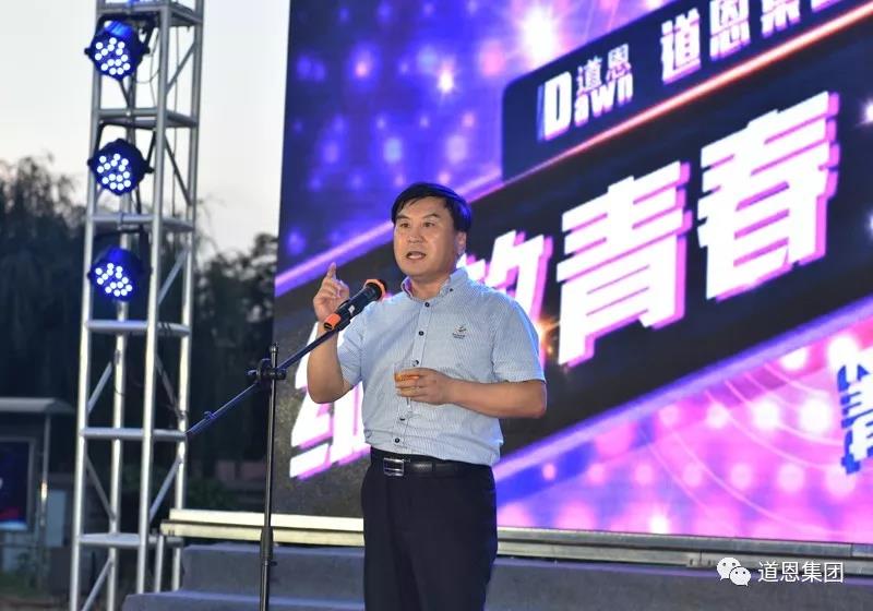 與往年大學生入職培訓最大的不同是,今年精心設置了主題為“綻放青春、點燃夢想”的篝火晚會。21日晚上,篝火晚會在道恩湖公園歡樂舉行,道恩集團董事長、道恩商學院院長于曉寧,總裁索延輝及集團公司有關領導出席活動,有關職能部門、經營單位負責人參加活動。