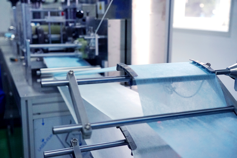 近日兩臺口罩生產設備到達車間后,公司即組織技術人員與設備生產廠家技術人員一起安裝調試,他們實行三班倒,全力保障生產線第一時間投用。3月底,還有兩臺口罩生產設備投產。技術人員劉井彥介紹,生產線為全自動化,生產流程為上料、分片、焊耳帶和熱壓定型四步,高效快捷。記者還看到,車間為10萬級凈化車間,生產人員進入需換腳套、洗手、更換隔離服,嚴格把好安全衛生關口。
