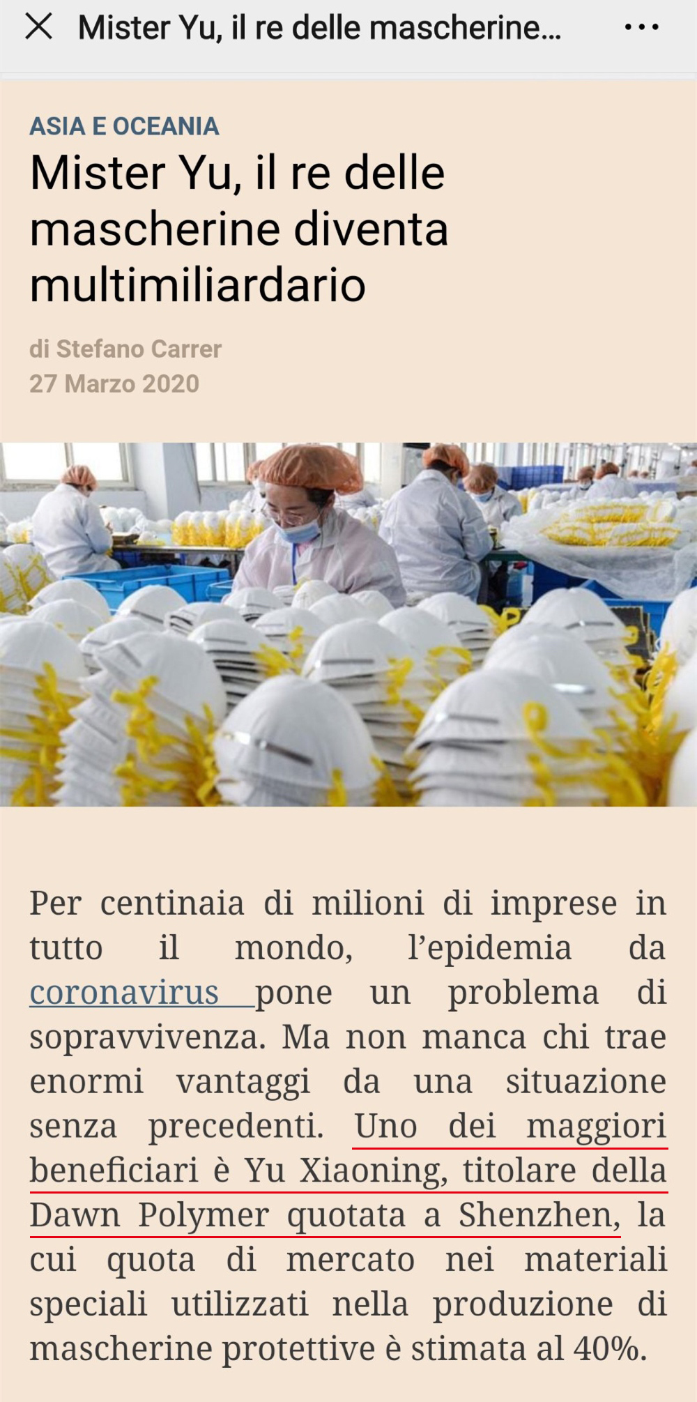 意大利《24小時太陽報》關注道恩股份