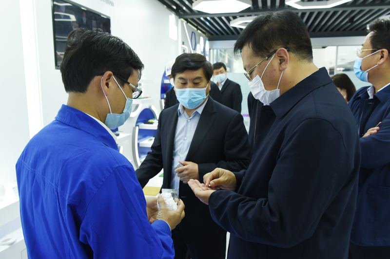 周鳳文副廳長一行先后參觀了道恩股份產品展廳、國家認定企業技術中心,于曉寧董事長簡要匯報了企業發展歷程、核心產品相關情況,以及疫情期間所作的工作。周鳳文副廳長對道恩的企業實力、科研能力、核心競爭力,以及在此次抗擊疫情中突出的專業保供能力,給予高度評價。