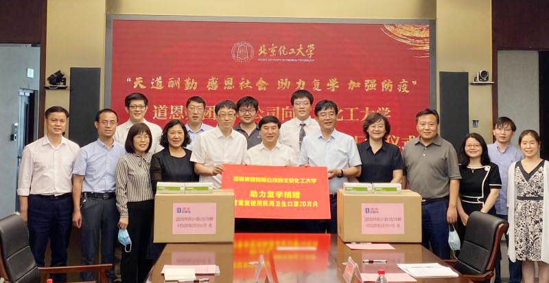 6月12日下午,道恩集團向北京化工大學捐贈20萬只可重復使用民用衛生口罩儀式在該校舉行,道恩集團董事長于曉寧、道恩(高材)北京科技有限公司研發中心主任韓吉斌、中國合成橡膠工業協會熱塑性彈性體分會有關負責人,北京化工大學黨委副書記宋來新,黨委常委、副校長張立群等領導和師生代表出席活動。