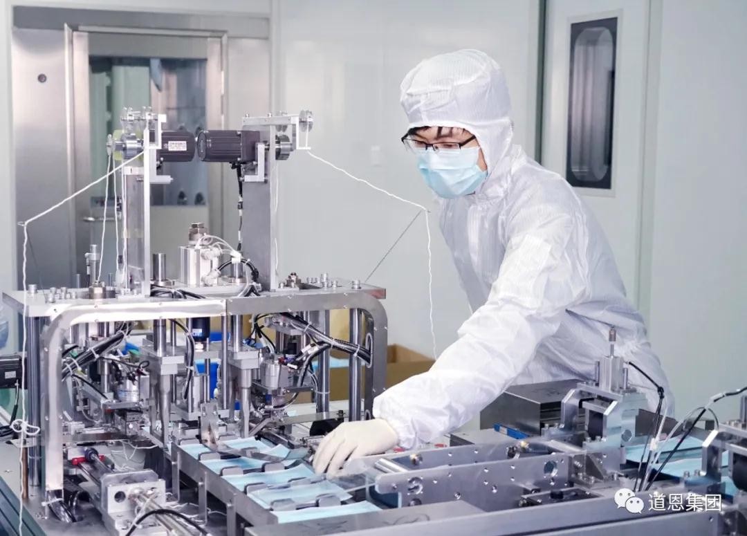 去年3月,在抗擊新冠肺炎疫情最吃勁的時刻,道恩模塑公司緊急建造了十萬級醫用口罩無塵生產車間,引進5條口罩生產線及檢驗、消毒配套設備,并取得了二類醫療器械生產資質,口罩日產量達40萬只以上,為疫情防控和復工復產作出了貢獻,成為“全國疫情防控重點保障企業”。