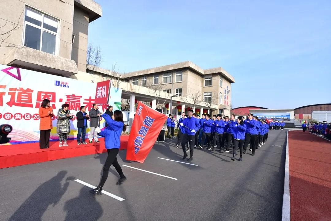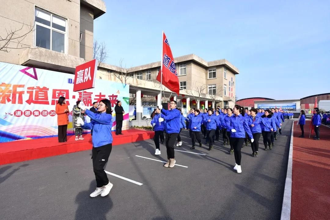 是日上午8時30分,由各部門、單位組成的“新”“道”“恩”“贏”“未”“來”6支代表隊士氣昂揚,依次通過主席臺接受檢閱,整齊的步伐、響亮的口號,彰顯了道恩人嶄新的精神風貌。道恩集團常務副總裁肖輝宣布趣味運動會正式開始。