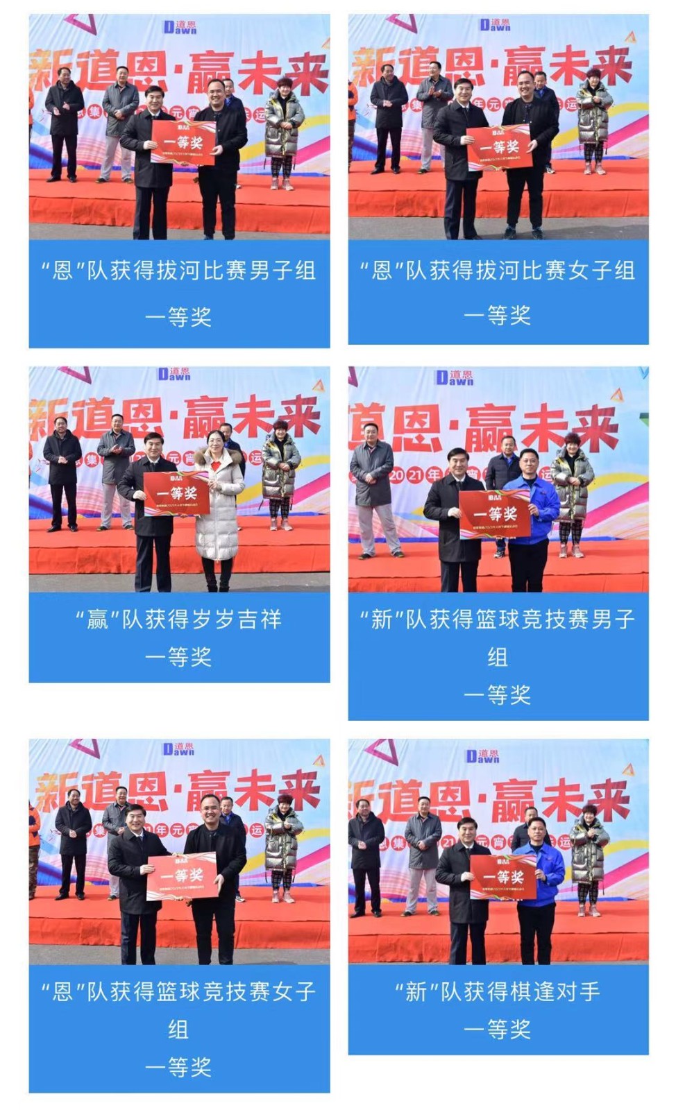 2月26日,道恩大學生公寓體育場彩旗招展、熱鬧非凡,一場主題為“新道恩·贏未來”的道恩集團2021年元宵節趣味運動會在這里隆重舉行。道恩集團董事長、總裁于曉寧及領導班子成員,與干部員工趣味運動“鬧元宵”,強調把競技中彰顯出來的團隊精神、拼搏精神和競爭精神融進工作,在新的征程上實現新作為、展示新形象、推進新跨越。