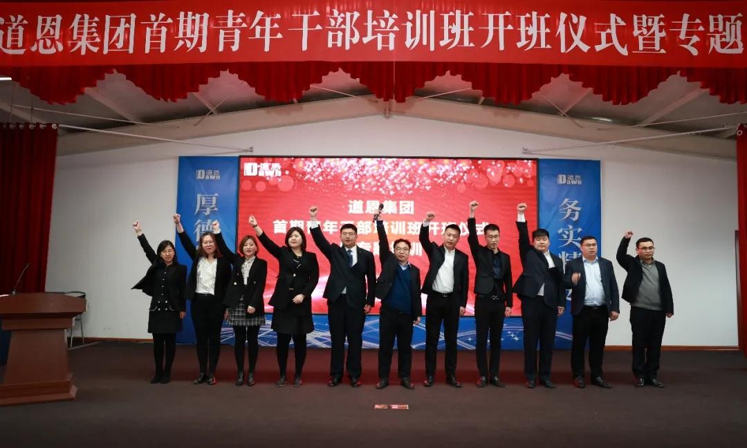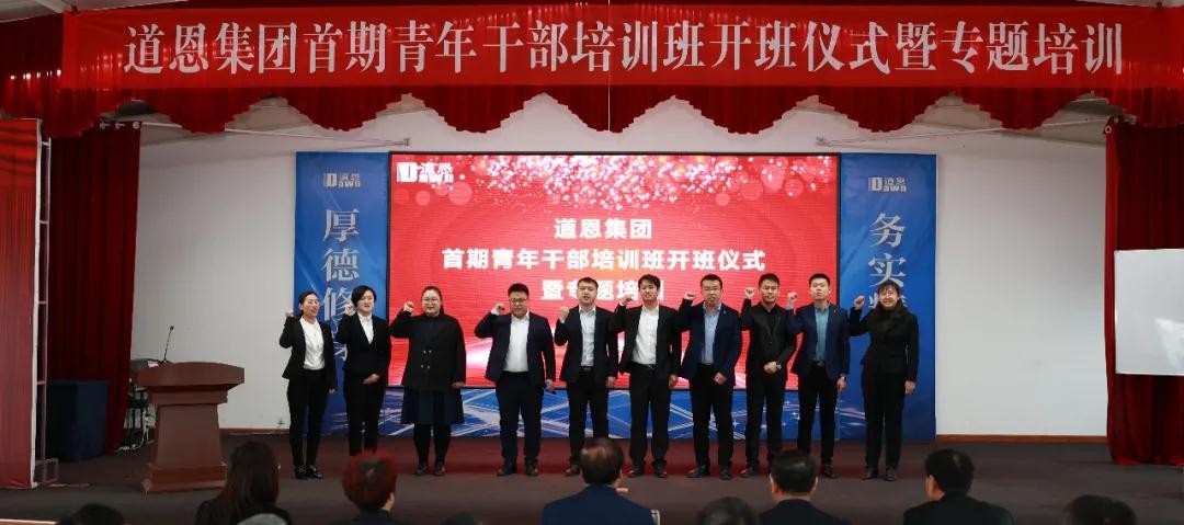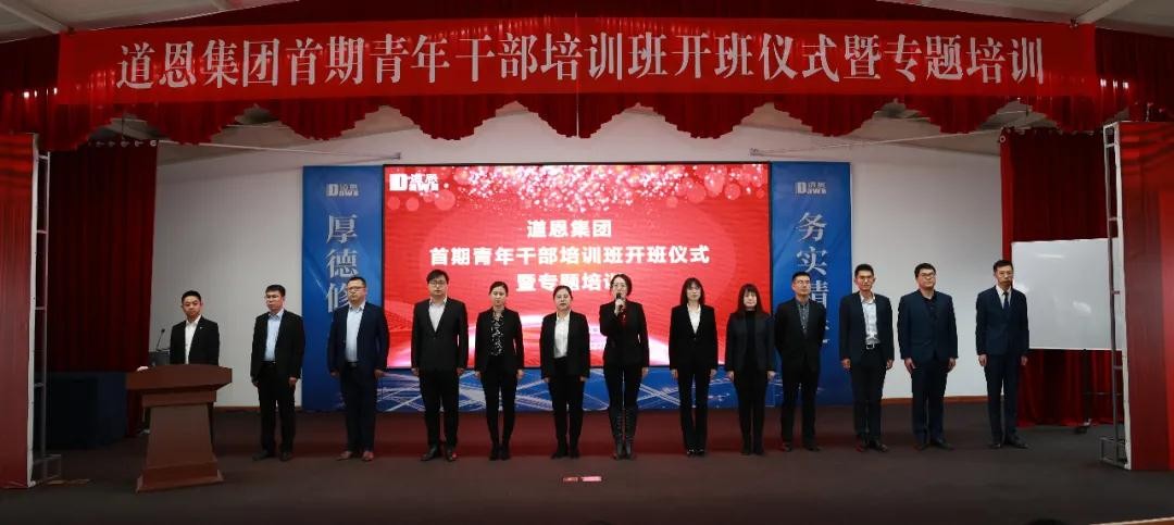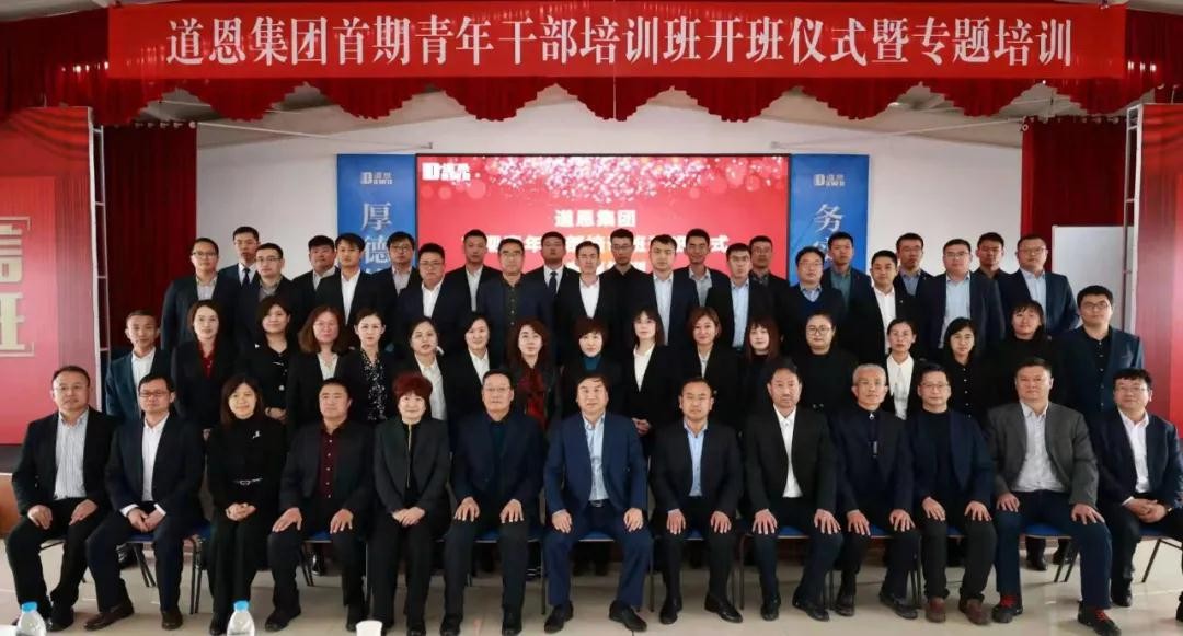 3月27日,道恩集團首期青年干部培訓班開班儀式暨專題培訓在道恩商學院隆重舉行,道恩集團董事長、總裁,道恩商學院院長于曉寧出席活動并授課,道恩集團領導班子成員,青年人才導師及青年人才參加活動。
