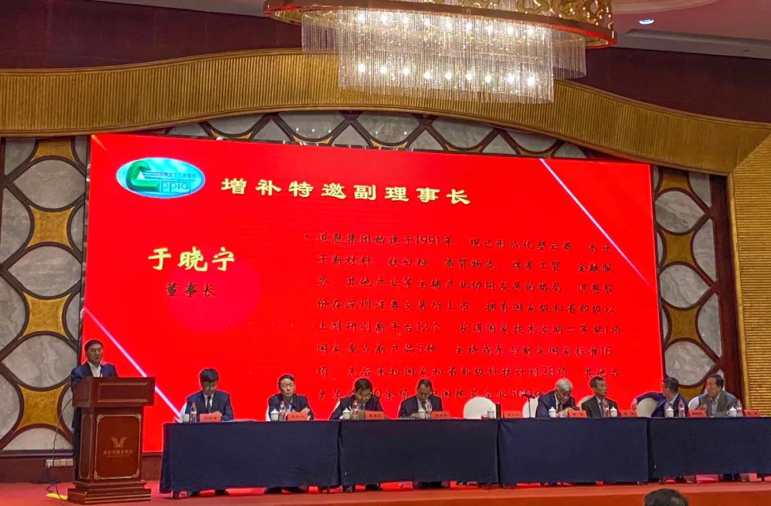 4月12日,在廣東深圳召開的中國塑料加工工業協會七屆六次理事(擴大)會議上,增補道恩集團董事長、總裁于曉寧為特邀副理事長,同時道恩集團被表彰為抗擊新冠疫情先進會員單位。