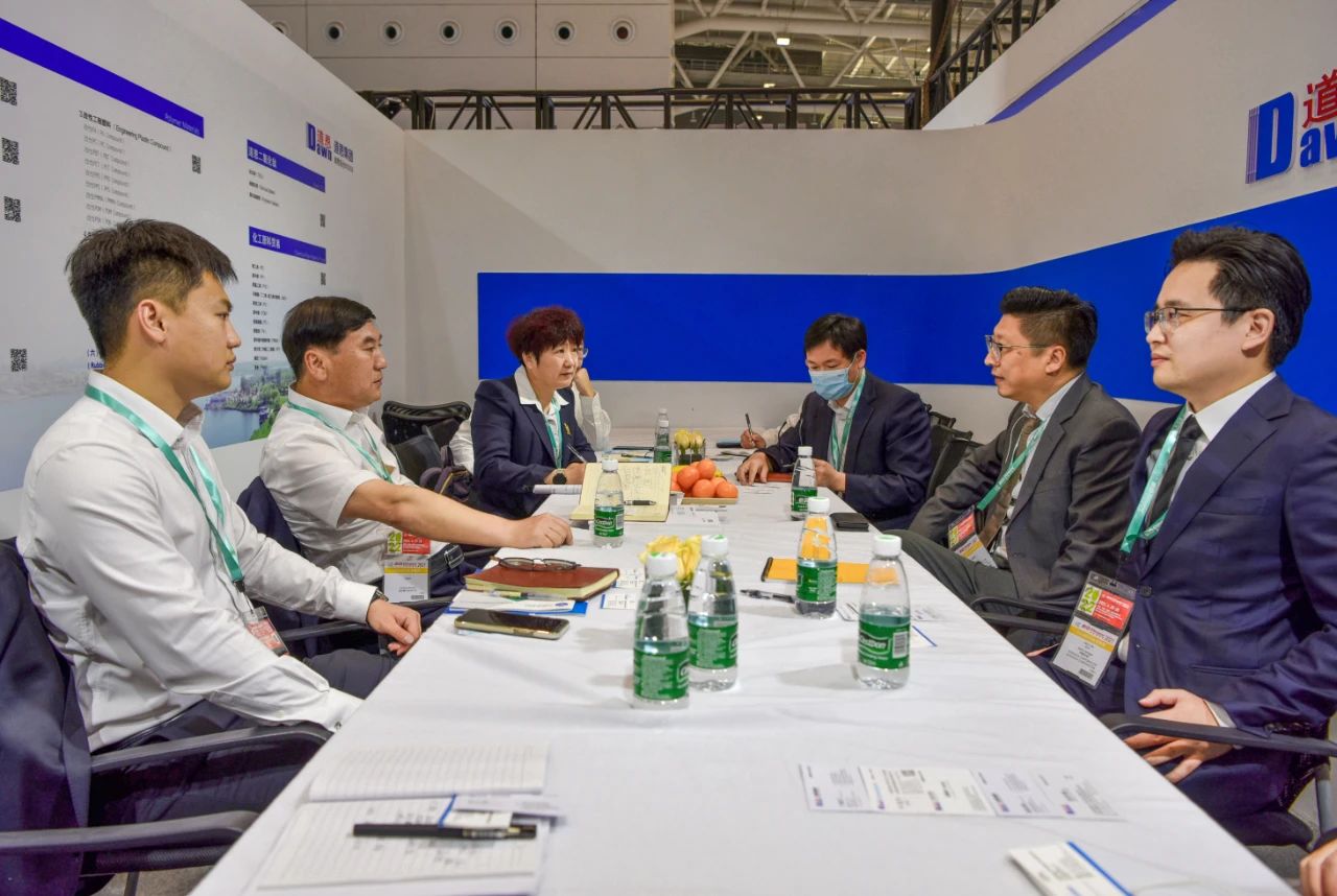 道恩展位上,電子屏滾動播放著反映企業發展歷程、戰略目標、科技研發、產品性能以及硬核抗疫等情況的視頻。參展人員熱情接待,詳細解答來訪客戶問題,充分介紹了道恩產品的優越性能。國內外知名展商慕名前往道恩展臺溝通洽談,其中不乏中煤集團、威高集團、海南逸盛、利安德巴塞爾、曼胡默爾、中國一汽、TCL、正泰電子、李寧等知名客戶。