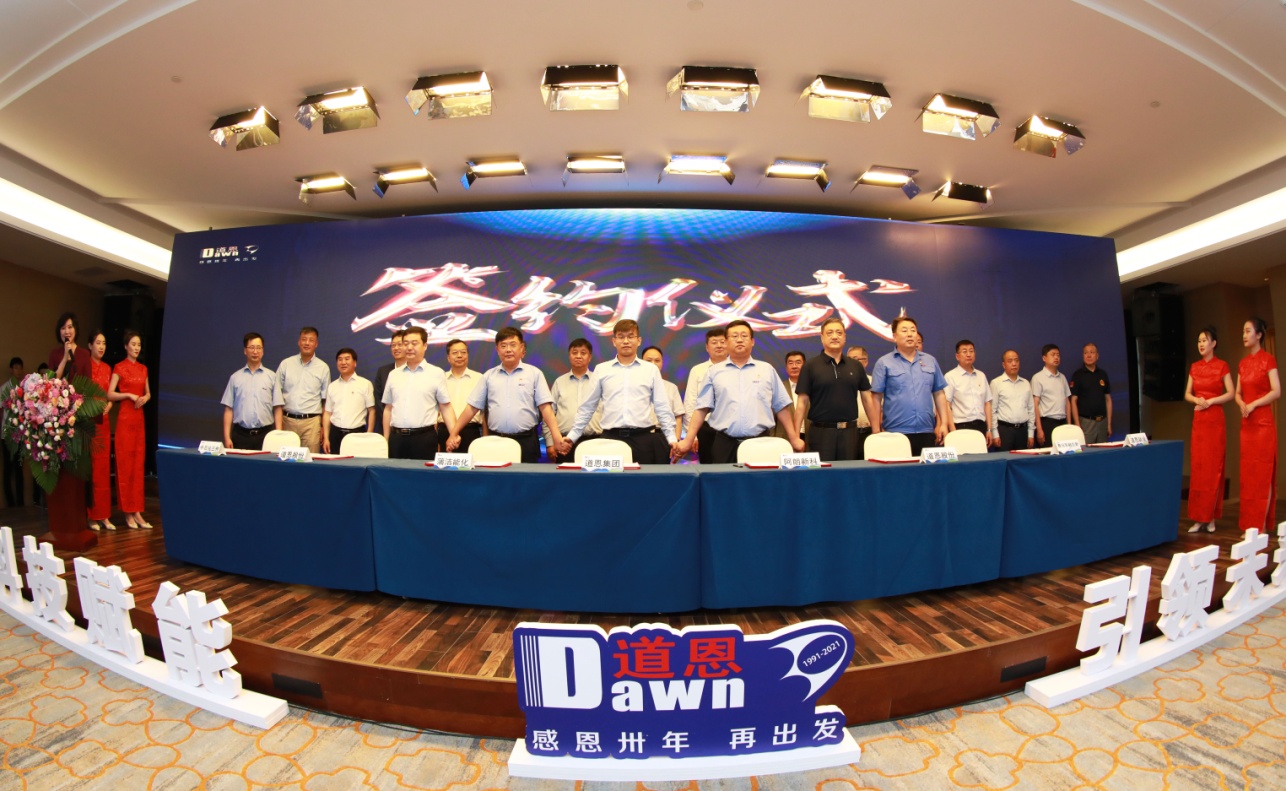 現場簽約,是此次大會的重頭戲。道恩集團與中國燃氣、延長石油、陜煤集團蒲城清潔能源化工、北京化工大學、沈陽化工大學等10家單位進行簽約,合作開發生物降解塑料、高端聚丙烯等產品,探尋產學研合作新路子,為道恩集團發展賦能,為創造美好生活賦能。