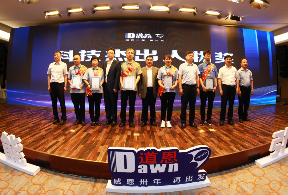 當天上午,道恩集團在龍口工商聯合大酒店舉行了以“科技賦能 引領未來”為主題的科技創新大會,回顧總結了30年來道恩科技創新發展的歷程,對在科技戰線上做出突出貢獻的科技工作者和優秀科研成果進行表彰獎勵。