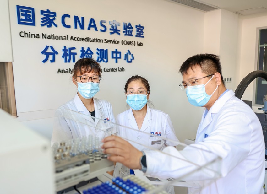 道恩股份檢測中心主任趙磊(右)指導實驗
