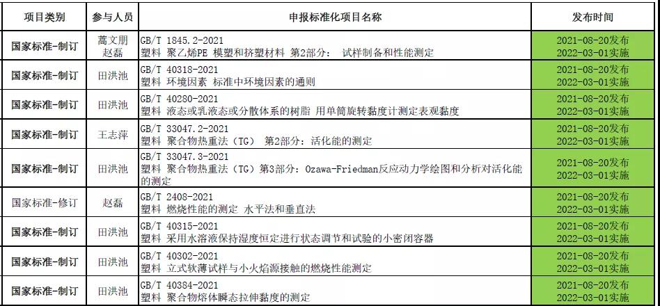 近日,國家市場監督管理總局、國家標準化管理委員會發布2021年第11號中國國家標準公告,道恩股份參與制修訂的9項國家標準獲批發布,上述國家標準將于2022年3月1日正式實施。