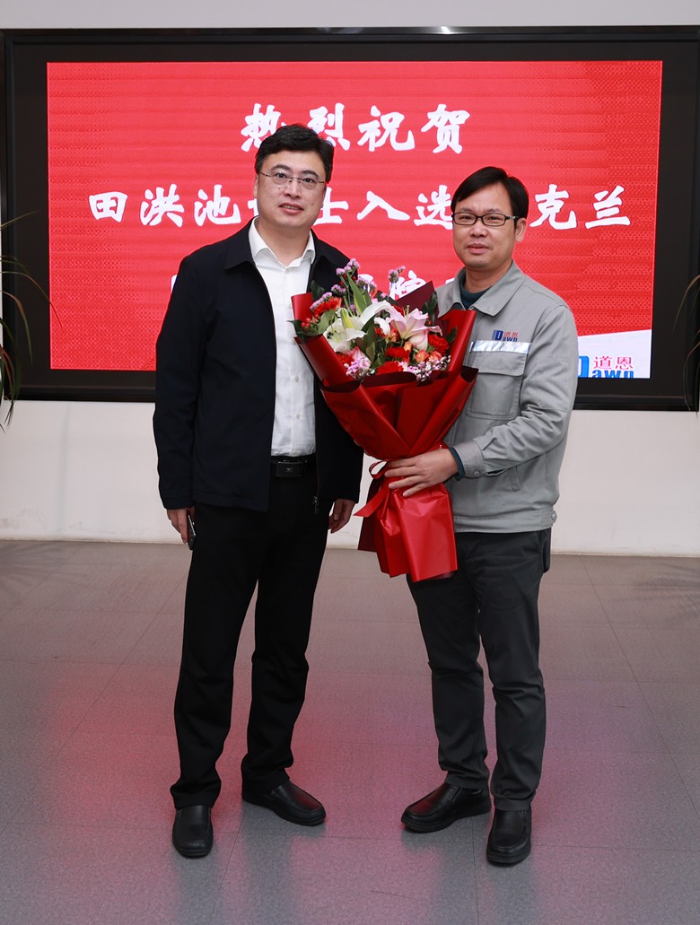 12月8日上午,龍口市委常委、組織部部長姜利春走進道恩集團,祝道恩股份總經理田洪池博士當選烏克蘭國家工程院外籍院士,勉勵田洪池院士繼續發揮科研領軍人才作用,勇于創新、勇攀高峰,多出成果、多育人才,為全市新舊動能轉換和高質量發展做出新的更大貢獻。龍口經濟開發區黨工委副書記王立新,道恩集團董事長、總裁于曉寧,常務副總裁肖輝出席活動。