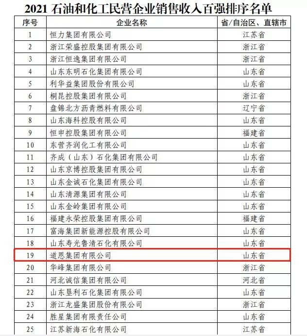 12月28日,2021石油和化工民營企業發展大會在線上召開,會上發布了2021石油和化工民營企業銷售收入百強排序名單及分析報告,并對國家促進“專精特新”中小企業政策進行解讀。道恩集團榮列2020中國石油和化工民營企業銷售收入百強第19位,較去年上升11名。