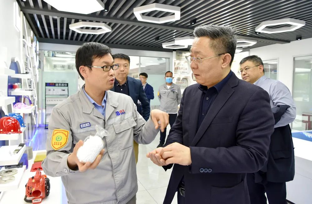 任賢全副總裁一行參觀了道恩集團總部、道恩化學,道恩承建并管理的龍口市新材料科技產業園,以及高分子新材料產業、鈦產業等骨干企業,實地了解道恩的企業發展、園區建設、產業布局、科技研發、市場拓展、產品應用等情況。
