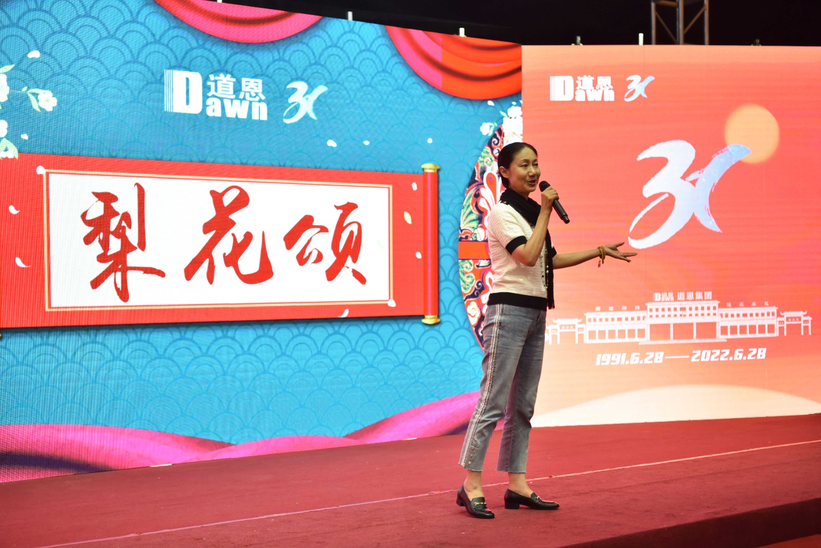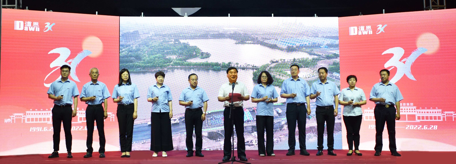 6月28日,恰逢道恩集團31周歲生日。道恩人齊聚道恩湖畔,相約道恩橋上,隆重舉行以“感恩心向黨 奮斗新征程”為主題的,慶祝中國共產黨成立101周年暨道恩集團成立31周年文藝演出。道恩集團董事長、總裁于曉寧出席活動,道恩集團領導班子成員,各職能部門經理、省內經營單位總監以上及優秀干部代表,退休老干部、干部員工家屬代表等參加活動。