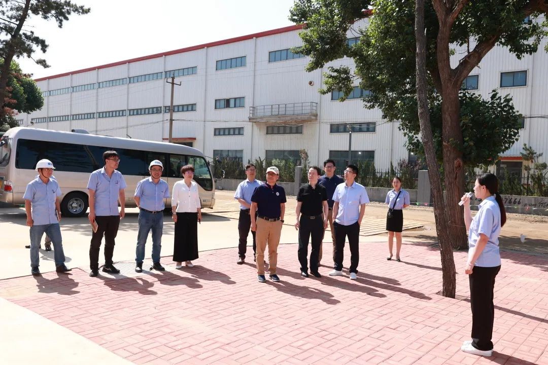 是日上午,在道恩股份總經理田洪池、道恩研究院院長陳青葵、道恩特彈公司總經理邢海琳的陪同下,北化大專家、教授一同觀摩了道恩集團。實地參觀了道恩集團總部大廳、道恩湖公園、道恩斯維特公司、道恩鈦業公司、PBAT項目現場、道恩特彈公司及道恩股份母公司,聽取了有關道恩產業布局、科研能力、核心產品等相關介紹。