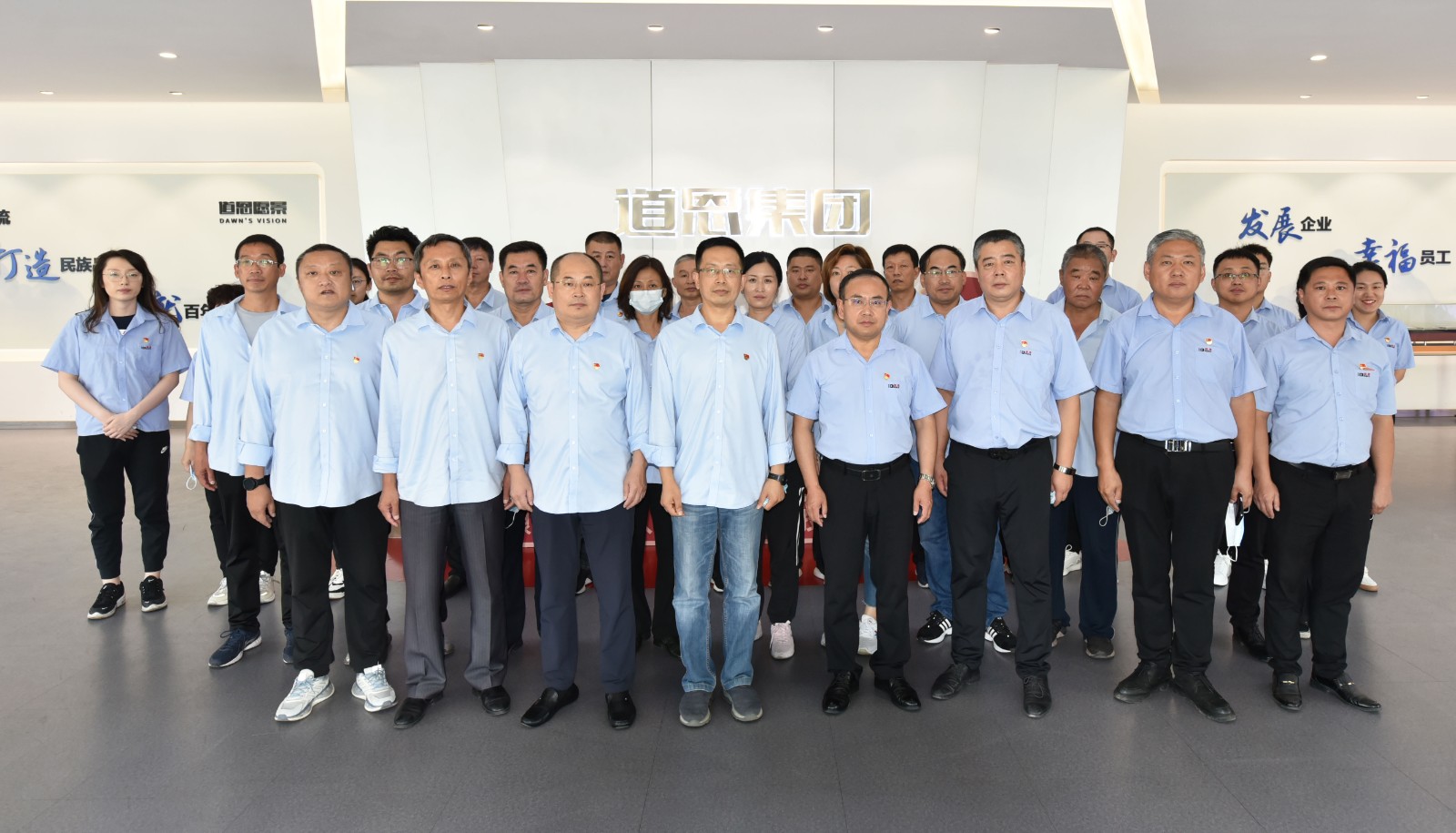 在道恩集團總部,華電龍口黨員干部們共同參觀了總部大廳,聽取了道恩的企業介紹、發展概況、企業文化建設等情況。道恩集團黨總支書記、常務副總裁肖輝,行政管理部部長楊景毅參加活動。