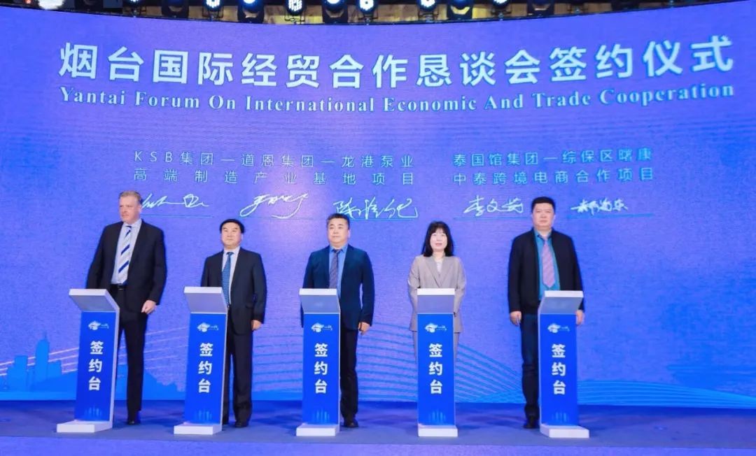 11月6日下午,煙臺國際經貿合作懇談會在上海虹橋祥源希爾頓酒店舉行。懇談會上,道恩集團與德國凱士比集團、龍港股份簽署高端制造產業基地項目合作協議,由此開啟“合作賦能,創新共贏”的新征程。