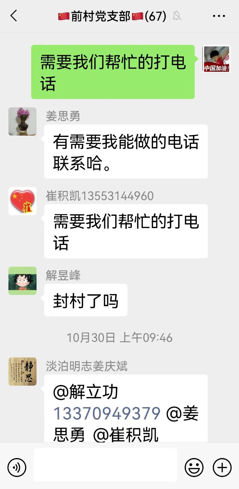 據姜思成介紹,10月29日晚,根據疫情防控的需要,村居進行靜態管理。“需要我們幫忙的,打電話!”當晚,解立功在村里微信群第一個主動請纓。隨即,他被安排到夜班執勤。“主要負責巡邏、流調、轉運,協調上門核酸采樣等工作。”解立功說,前3個晚上,都是他自己堅守崗位,那幾天海風大、氣溫低,晚上挺難熬的。