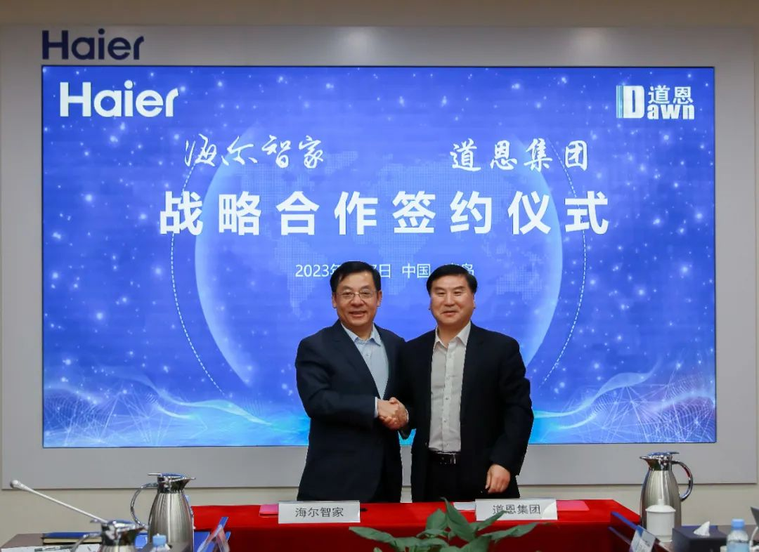 3月7日,道恩集團與海爾智家在山東青島簽署戰略合作協議,就商務、技術和生態領域達成戰略合作。道恩集團董事長、總裁于曉寧與海爾集團高級副總裁、海爾智家董事長李華剛簽署協議,雙方團隊成員共同參加了簽約儀式。