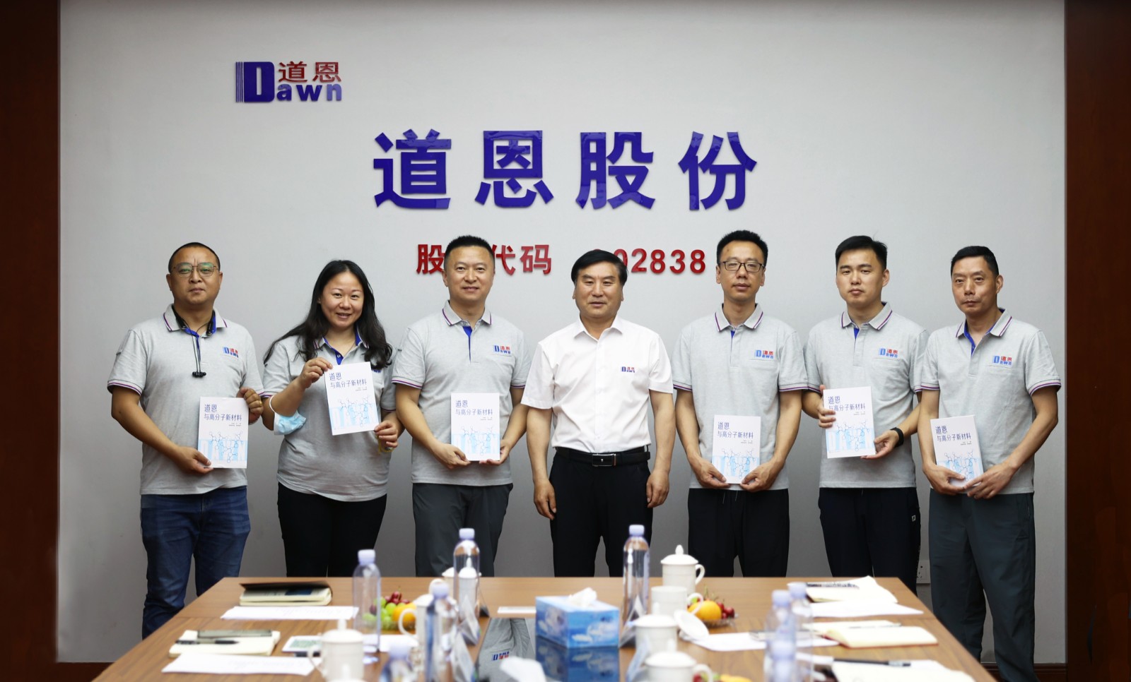 見面會之前,道恩合復核心人員參觀了道恩總部及龍口市道恩新材料科技產業園骨干企業,雙方人員就降解材料裝置改造、工藝流程、設計參數進行技術交流。見面會上,大家觀看了道恩集團宣傳片,有關領導或負責人講解了集團及公司戰略、企業文化等內容,于曉寧董事長為道恩合復的家人們贈送了《道恩與高分子新材料》一書。與會人員暢所欲言,談感受、說打算、話未來,氣氛融洽而熱烈。
