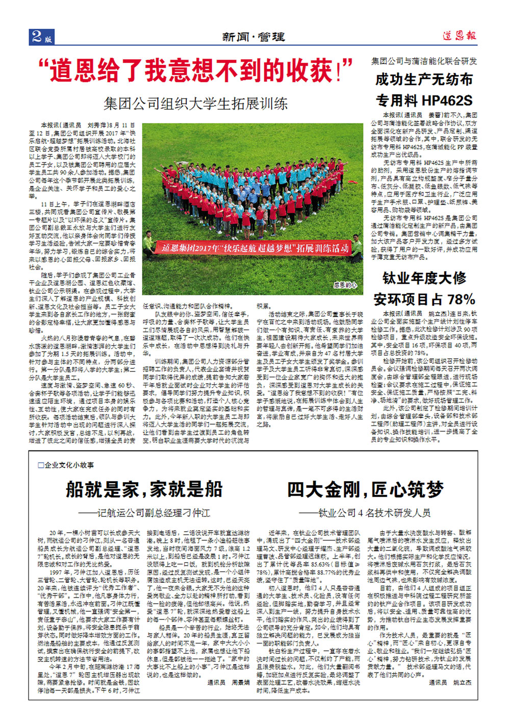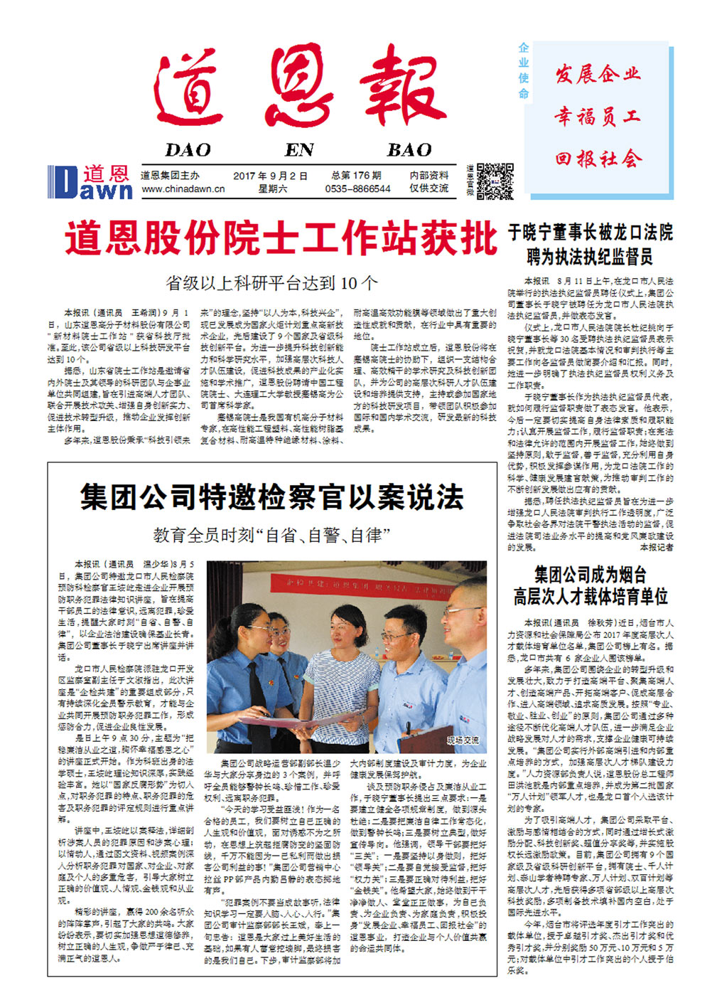道恩集團始建于1991年,歷經多年探索和實踐,現已形成化塑貿易、高分子新材料、鈦白粉、現代物流、煤炭工貿、金融服務、其他產業等主輔產業協同發展的格局。2017年1月,道恩股份(股票代碼:002838)在深圳證券交易所上市。