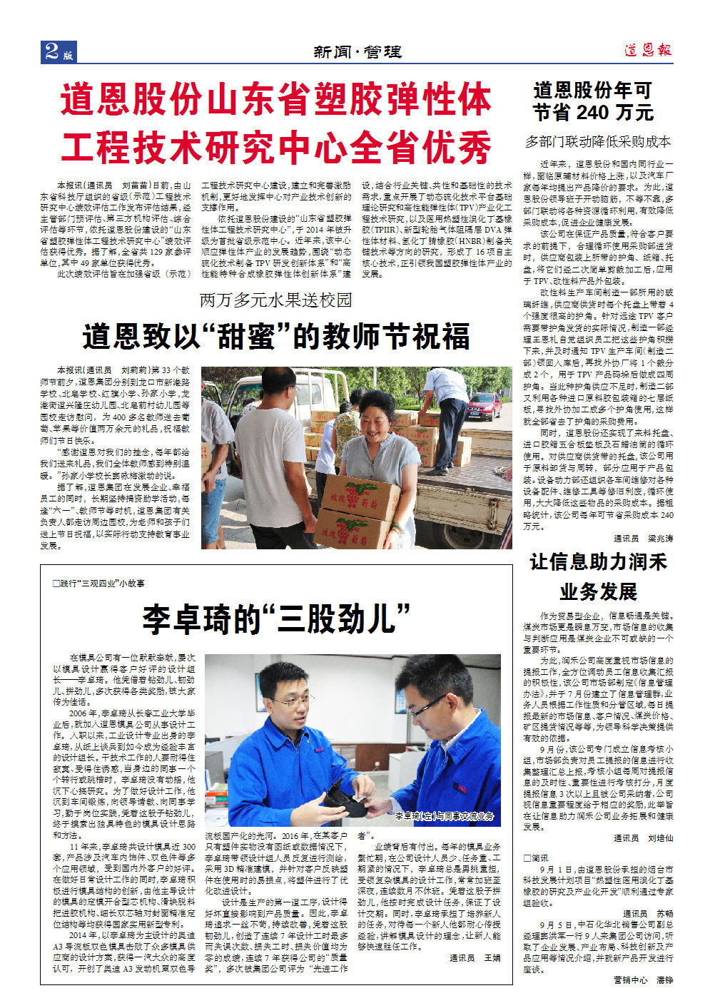 道恩集團始建于1991年,歷經多年探索和實踐,現已形成化塑貿易、高分子新材料、鈦白粉、現代物流、煤炭工貿、金融服務、其他產業等主輔產業協同發展的格局。2017年1月,道恩股份(股票代碼:002838)在深圳證券交易所上市。