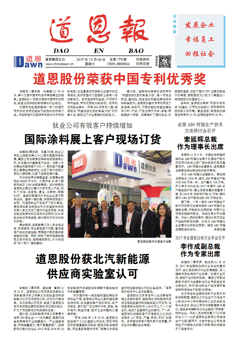 道恩集團始建于1991年,歷經多年探索和實踐,現已形成化塑貿易、高分子新材料、鈦白粉、現代物流、煤炭工貿、金融服務、其他產業等主輔產業協同發展的格局。2017年1月,道恩股份(股票代碼:002838)在深圳證券交易所上市。