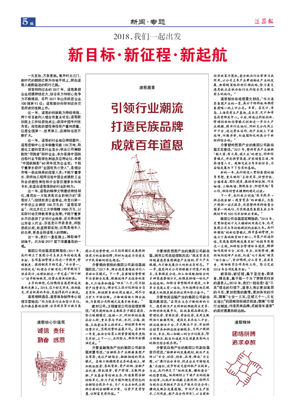 道恩集團始建于1991年,歷經多年探索和實踐,現已形成化塑貿易、高分子新材料、鈦白粉、現代物流、煤炭工貿、金融服務、其他產業等主輔產業協同發展的格局。2017年1月,道恩股份(股票代碼:002838)在深圳證券交易所上市。
