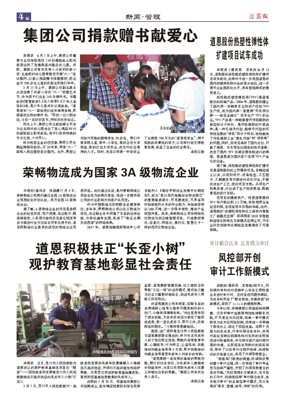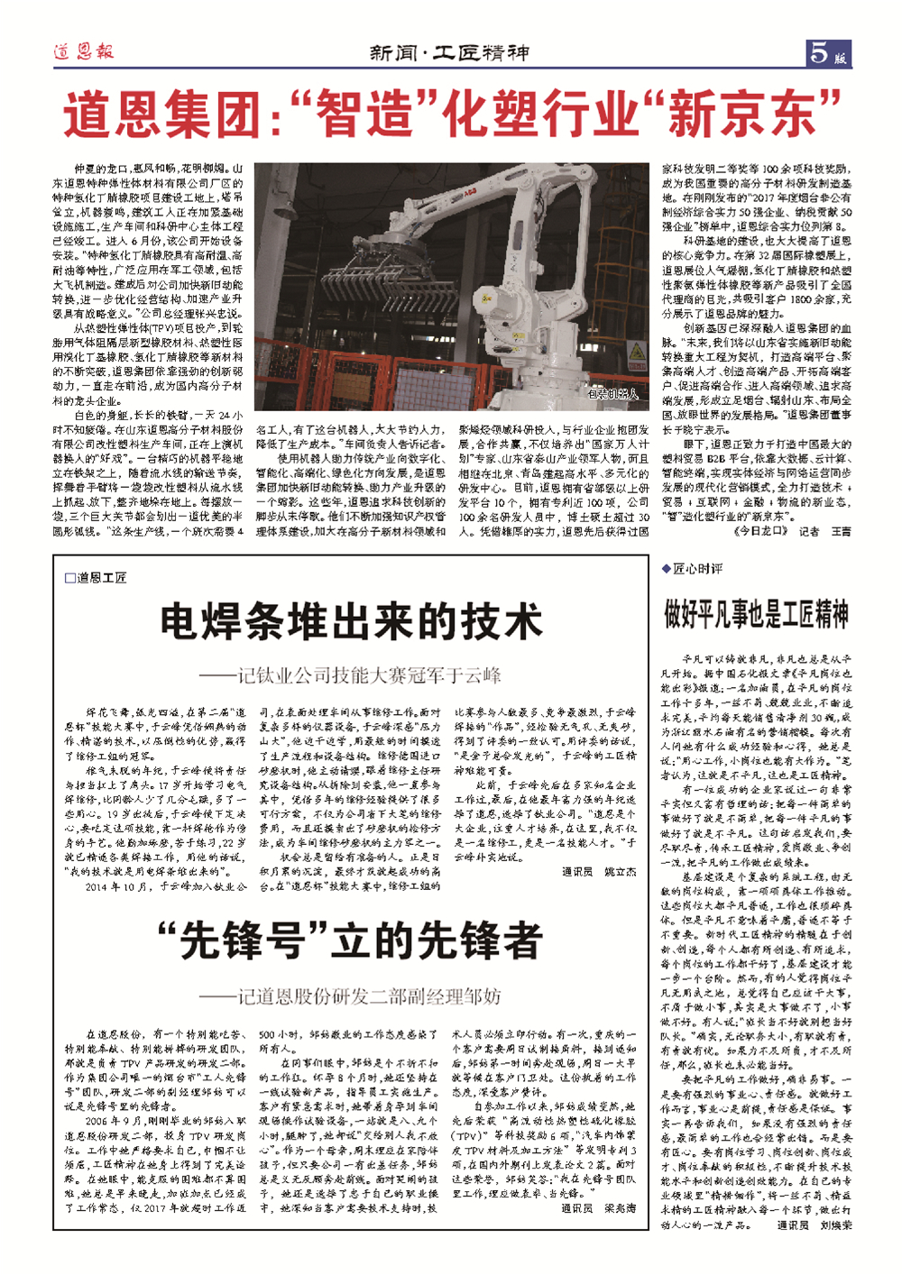 道恩集團始建于1991年,歷經多年探索和實踐,現已形成化塑貿易、高分子新材料、鈦白粉、現代物流、煤炭工貿、金融服務、其他產業等主輔產業協同發展的格局。2017年1月,道恩股份(股票代碼:002838)在深圳證券交易所上市。