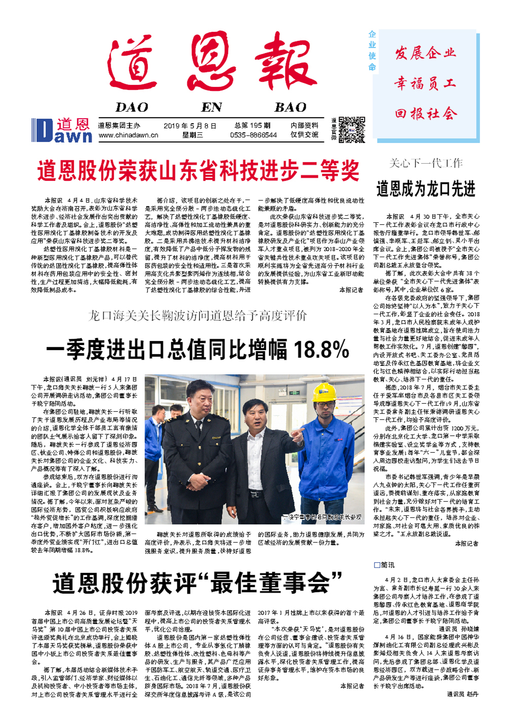 道恩集團始建于1991年,歷經多年探索和實踐,現已形成化塑貿易、高分子新材料、鈦白粉、現代物流、煤炭工貿、金融服務、其他產業等主輔產業協同發展的格局。2017年1月,道恩股份(股票代碼:002838)在深圳證券交易所上市。