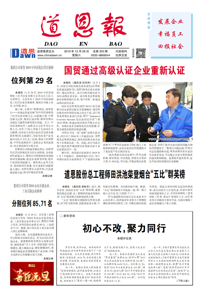 道恩集團始建于1991年,歷經多年探索和實踐,現已形成化塑貿易、高分子新材料、鈦白粉、現代物流、煤炭工貿、金融服務、其他產業等主輔產業協同發展的格局。2017年1月,道恩股份(股票代碼:002838)在深圳證券交易所上市。