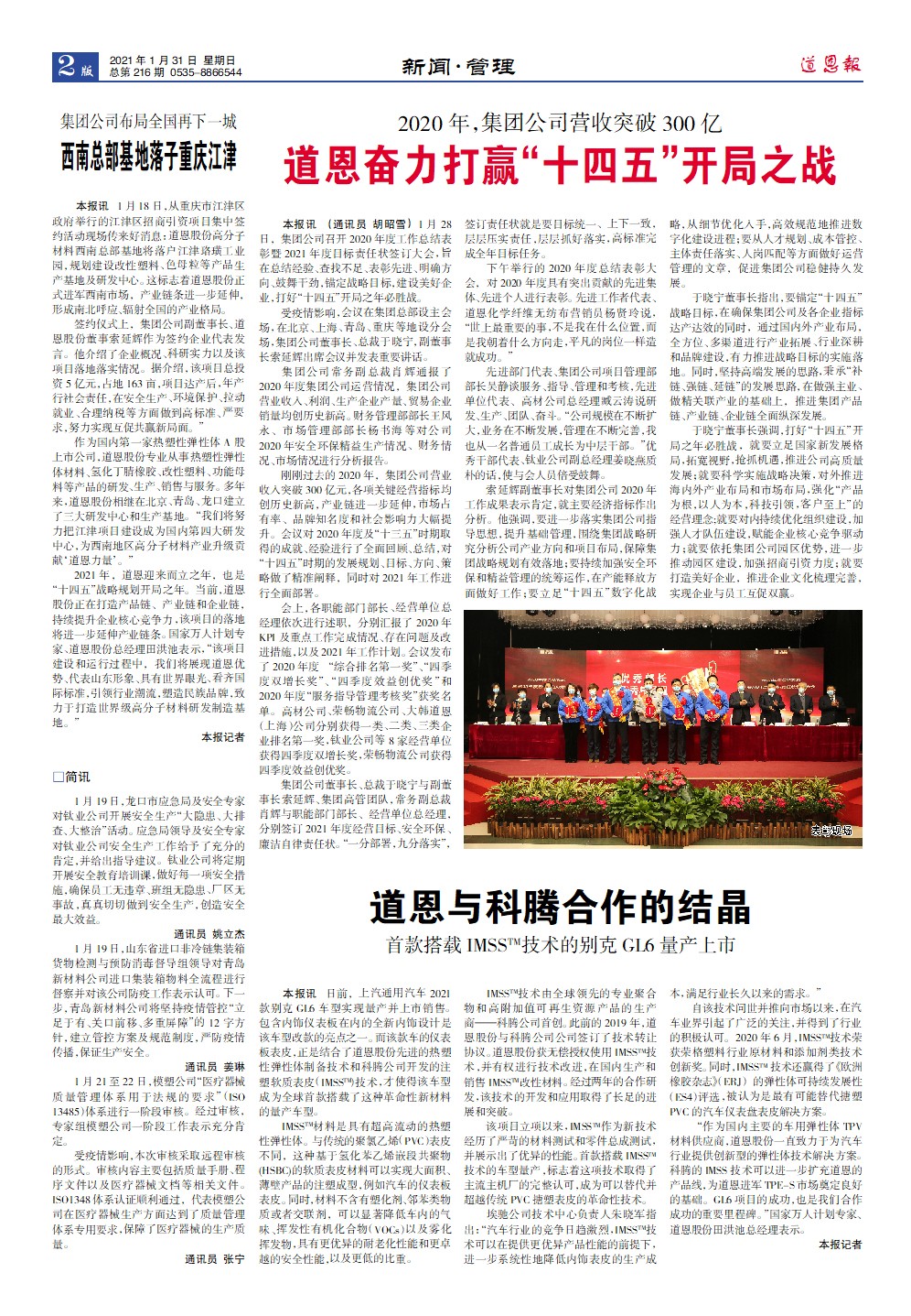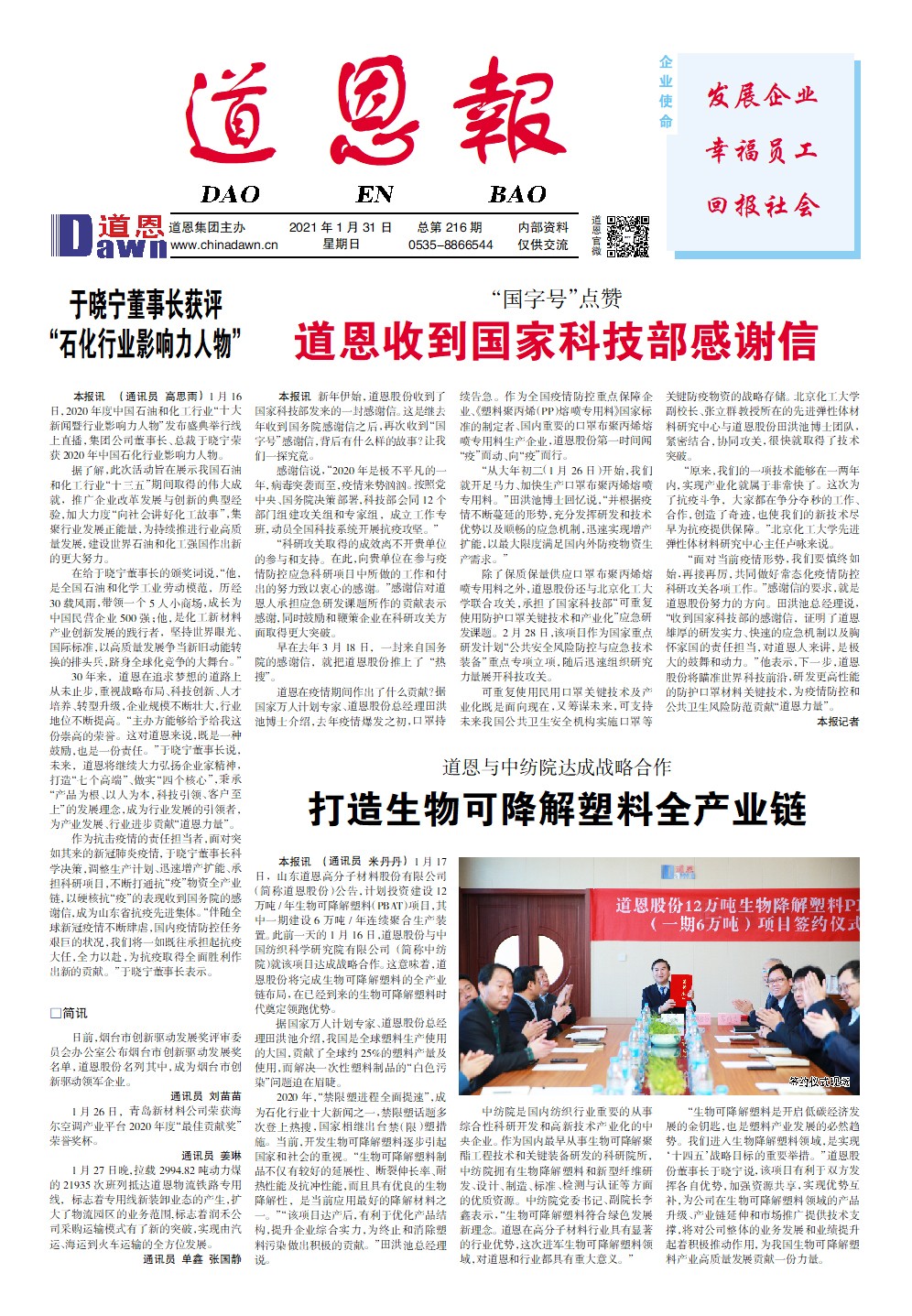 道恩集團始建于1991年,歷經多年探索和實踐,現已形成化塑貿易、高分子新材料、鈦白粉、現代物流、煤炭工貿、金融服務、其他產業等主輔產業協同發展的格局。2017年1月,道恩股份(股票代碼:002838)在深圳證券交易所上市。