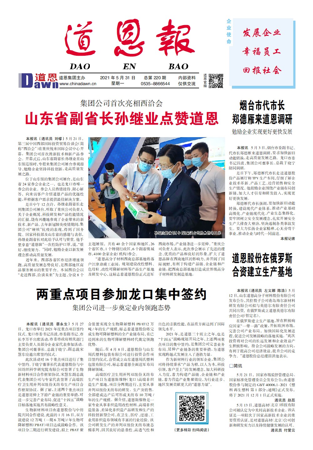 道恩集團始建于1991年,歷經多年探索和實踐,現已形成化塑貿易、高分子新材料、鈦白粉、現代物流、煤炭工貿、金融服務、其他產業等主輔產業協同發展的格局。2017年1月,道恩股份(股票代碼:002838)在深圳證券交易所上市。